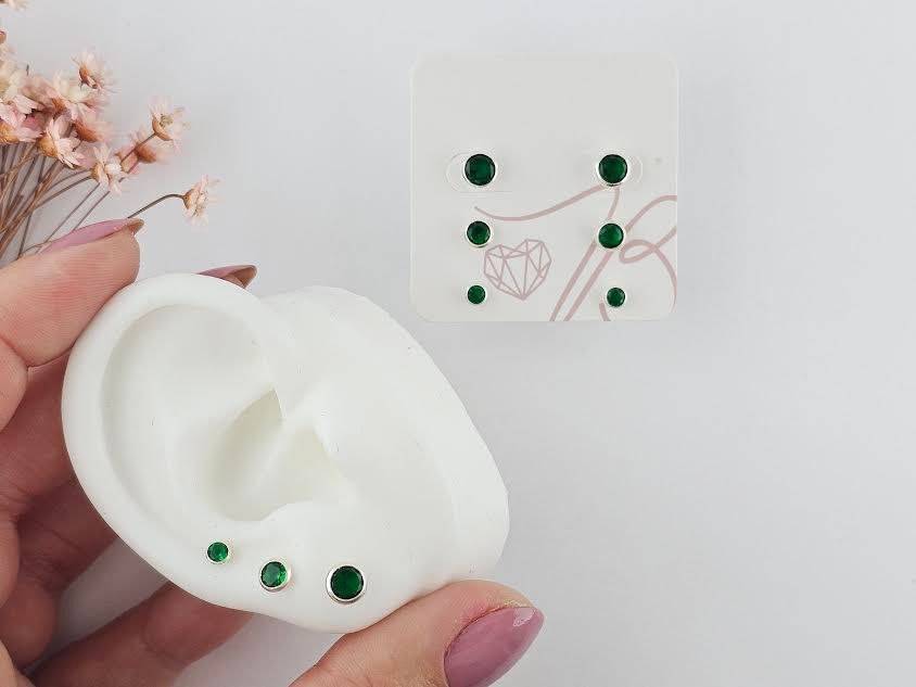 Trio de Brincos com Zircônia Verde Bandeira em Prata 925